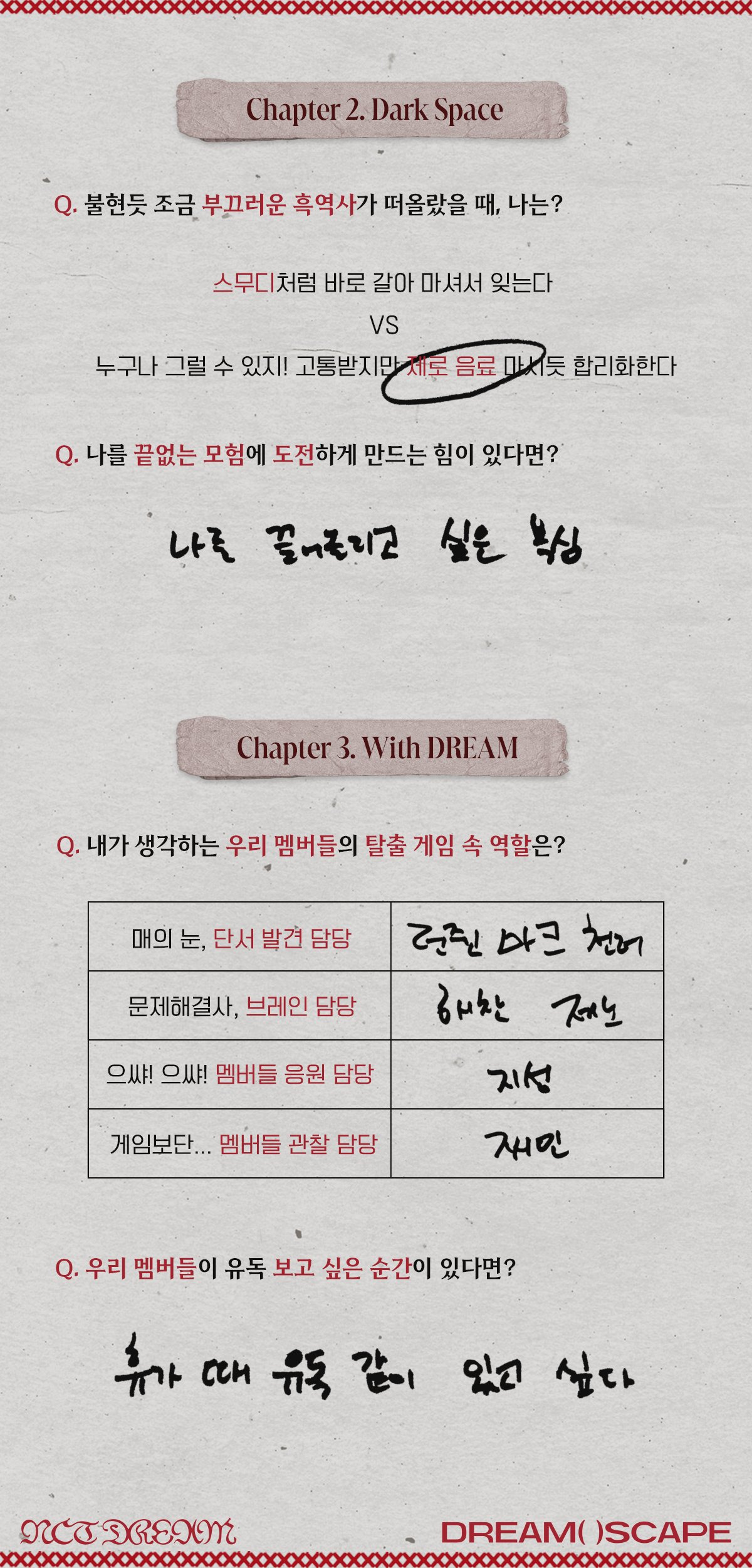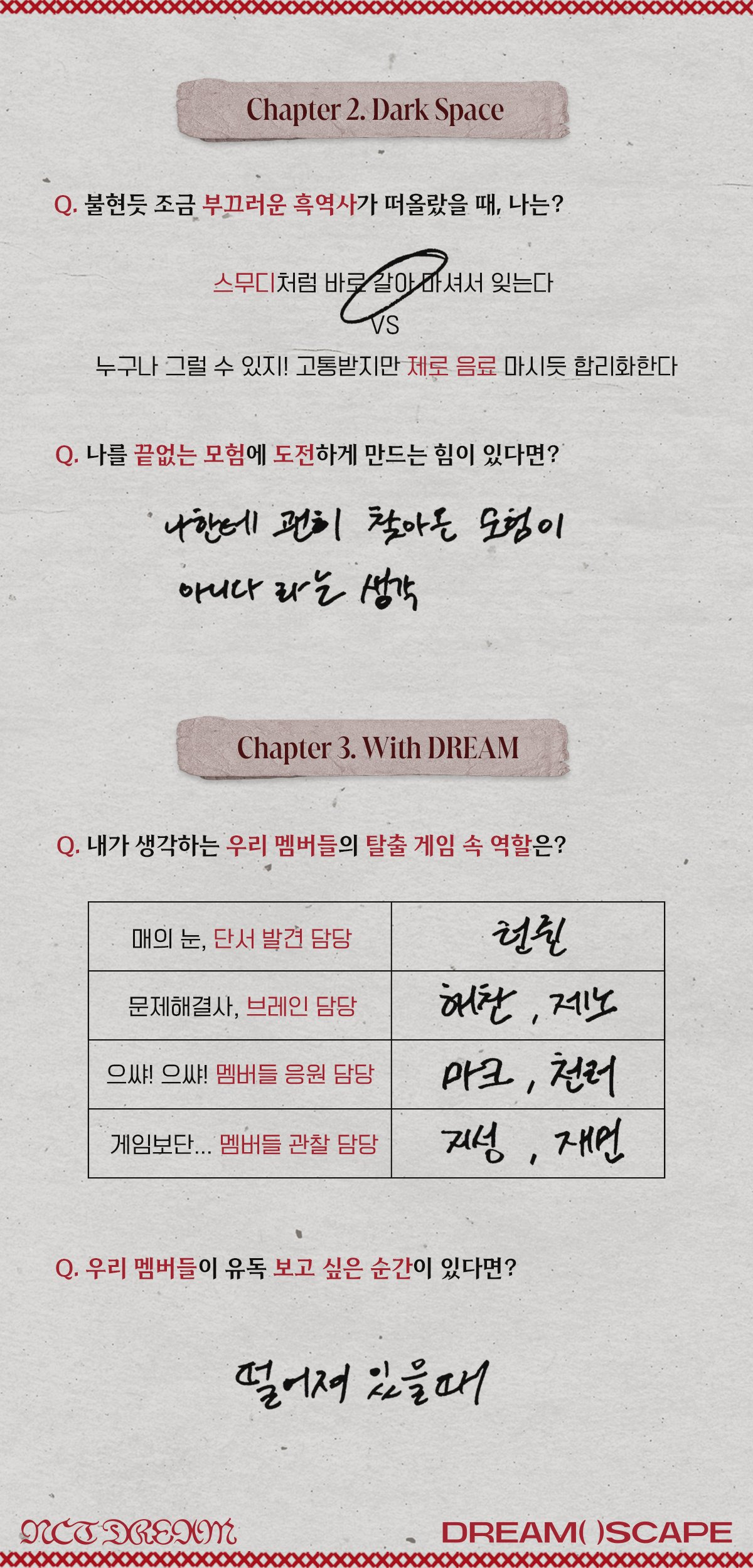 Q. 내가 생각하는 우리 멤버들의 탈출 게임 속 역할은?
