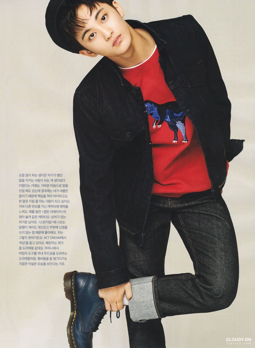 요즘 많이 하는 생각은 자기가 했던 말을 지키는 사람이 되는 게 생각보다 어렵다는 거예요. 가벼운 마음으로 말을 던질 때도 있는데 결국에는 내가 내뱉은 말이기 때문에 책임을 져야 하더라고요. 한 말을 지킬 줄 아는 사람이 되고 싶어요. 저와 다른 면모를 지닌 캐릭터에 매력을 느껴요. 예를 들면 <캡틴 아메리카>의 윈터 솔져 같은 캐릭터요. 상처가 있는 차가운 남자죠. <스펀지밥>에 나오는 달팽이 개리도 게으르고 주변에 신경을 쓰지 않는 점 때문에 좋아해요. 저는 그렇지 못하거든요. NCT DREAM에서 '허당'을 맡고 있어요. 해찬이는 제가 좀 도라에몽 같대요. 주머니에서 마법의 도구를 꺼내 주인공을 도와주는 도라에몽처럼, 멤버들을 잘 챙기다가도 가끔은 어설픈 모습을 보인다는 거죠.